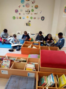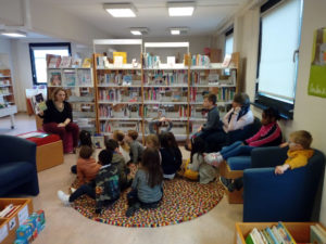 - L’espace jeunesse de la Bibliothèque: Là-bas, les enfants ont eu l’occasion de visiter tout l’espace jeunesse, de découvrir 1 ou plusieurs album(s) grâce aux bibliothécaires et de découvrir les livres librement.