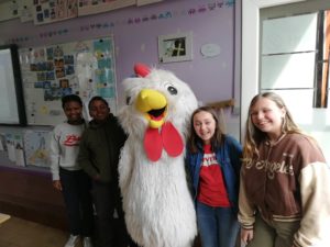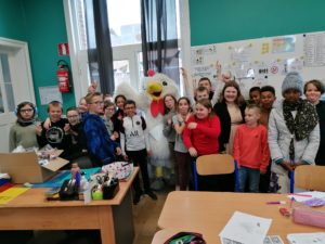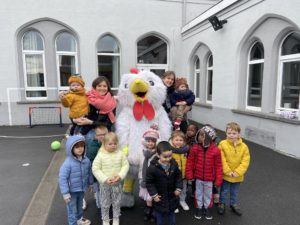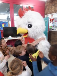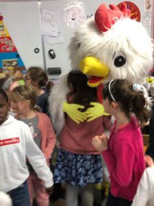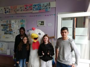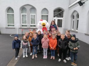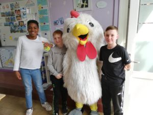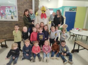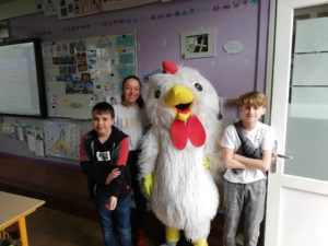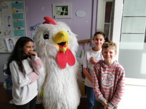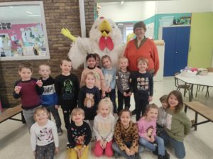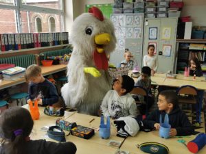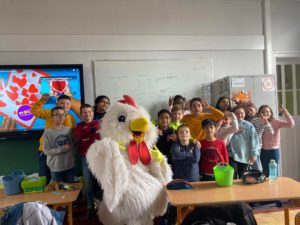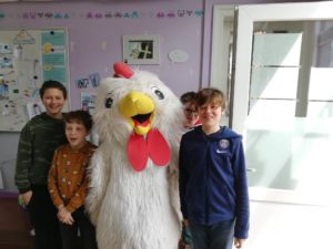 Cette année encore nos élèves ont eu la chance d’avoir la visite de Mme La Poule. L’occasion pour eux de lui faire un gros câlin, lui donner quelques dessins, lui raconter des blagues, mais surtout de recevoir un beau sachet de friandises !