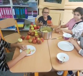 Ce jeudi 26 septembre, les élèves de 4ème année ont réalisé une compote de pommes. Tous les mois, ils auront l’occasion de cuisiner et de découvrir une nouvelle recette.