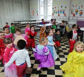 Ce jeudi, les élèves de 1ère et 2ème maternelle ont fêté l’approche du carnaval. Déguisements, danses, confettis, buffet de gourmandises,… Tout était réuni pour passer une belle matinée.