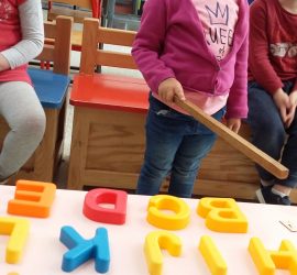 Nous avons abordé, en ce début d’année, les lettres de l’alphabet sous toutes leurs formes. Que la chasse aux lettres commence… Le temps d’une chanson sur les lettres de l’alphabet, Soline devient madame Valérie. Quel bonheur de pouvoir réaliser cette petite chanson devant tous les copains !