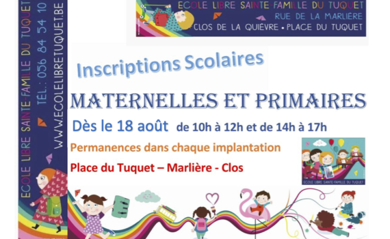 L’école la Sainte Famille du Tuquet est une école fondamentale de 2,5 ans à 12 ans. Ecole familiale installée dans un cadre verdoyant et sécurisant au coeur du quartier du Tuquet. Envie de nous rejoindre, nous restons à votre disposition pour tous renseignements, visite … 056/84.54.10 ou emc.camberlein@gmail.com