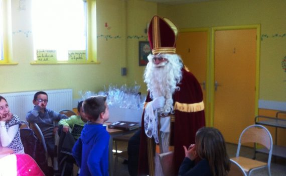 Le grand saint est venu à l’école. Les élèves lui avaient préparé diverses chansons. Ensuite, des élèves ont été appelés pour recevoir une gentille mise en garde. Mais tout s’est bien terminé car St Nicolas n’était pas venu les mains vides !