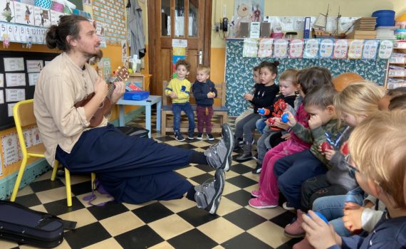 Ce jeudi 27 octobre, les élèves de maternelle de la Marlière ont découvert (ou redécouvert pour les plus grands) l’univers musical de Monsieur Antoine. Nous aurons la chance de participer à 6 séances de 50 minutes d’éveil à la musique pour notre plus grand bonheur.