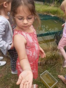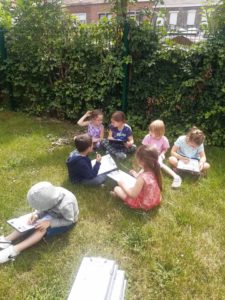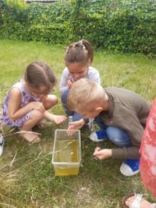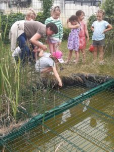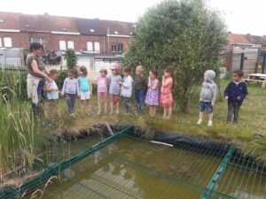 Avec Fanny, l’animatrice de la Cellule environnement de Mouscron, nous sommes partis à la découverte des habitants de la mare.