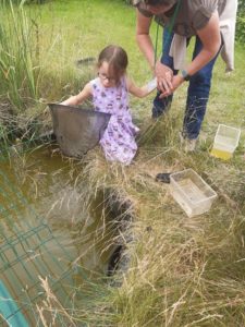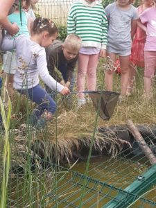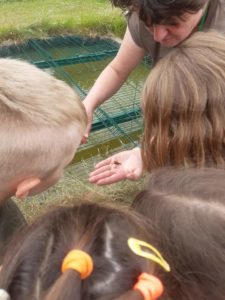 La première partie permet aux élèves de découvrir au moyen d’épuisettes les micro-organismes de la mare.