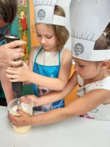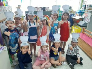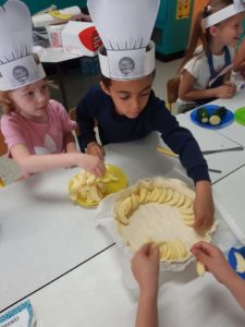Tout d’abord, il y a eu la journée Top chef où ils ont préparé, avec l’aide de Claire, l’infirmière du PMS (explication de la pyramide alimentaire), un apéro « santé » pour leurs parents, le souper ainsi que le petit déjeuner.