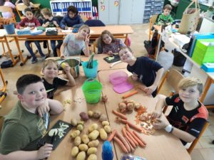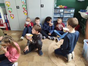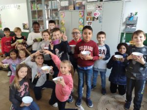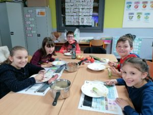 Recette du mois d’octobre Ce mois-ci, nous avons fait une bonne soupe aux légumes de saison : carottes, poireaux, oignons…Les élèves de Mme Orlane et de Mme Marie-Elise se sont régalés ! rbt rbt rbt rbt rbt rbt rbt rbt