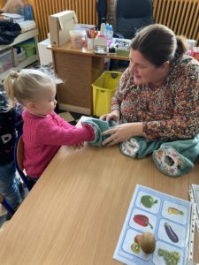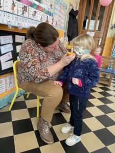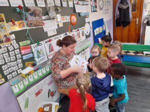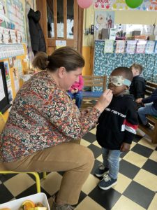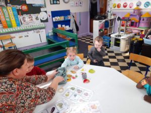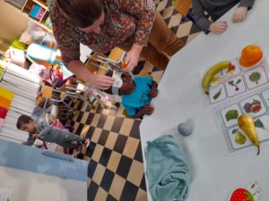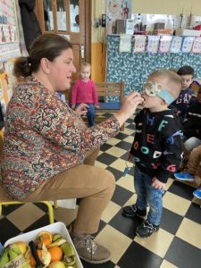 Nous avons donc invité Madame Claire, infirmière au centre PMS, pour réaliser une activité ludique autour des fruits.