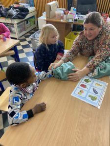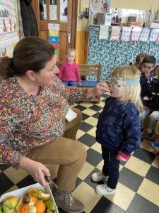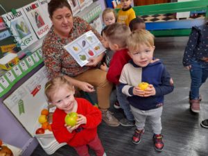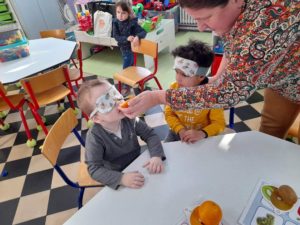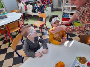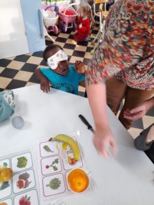 Les enfants ont pu goûter, sentir et toucher différents fruits sous forme de jeux.