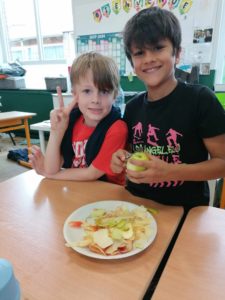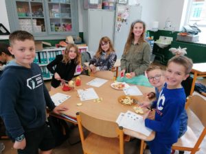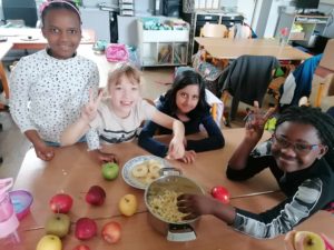 Ce jeudi 28 septembre, les élèves de Mme Marie-Elise et ceux de Mme Mégane – Orlane ont réalisé une compote de pommes.