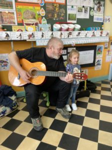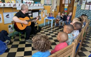 C’est avec Monsieur Fred de “Jeunesses Musicales” que les enfants ont le plaisir de participer à ces animations.