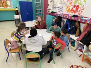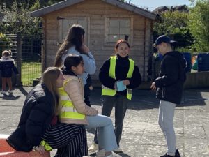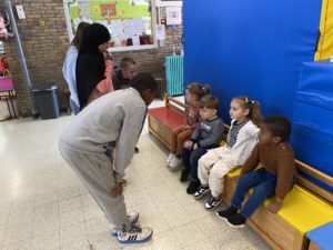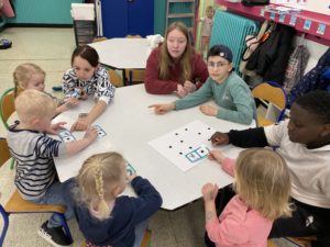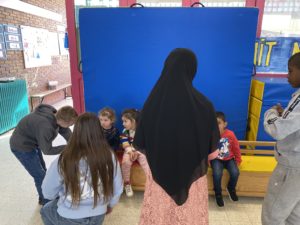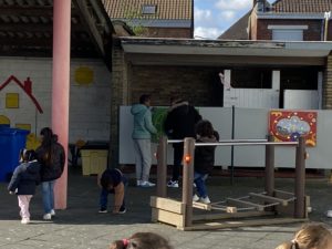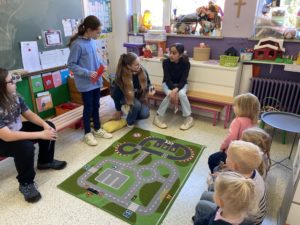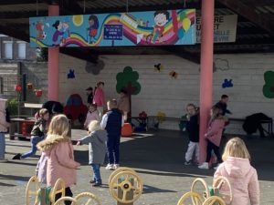 Après cette première partie de matinée bien animée, ils ont partagé ensemble le temps de récréation. Les 6e année ne se sont pas faits prier pour participer aux jeux des maternelles!