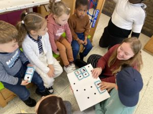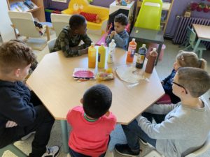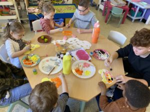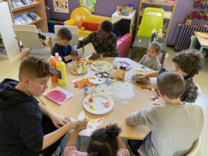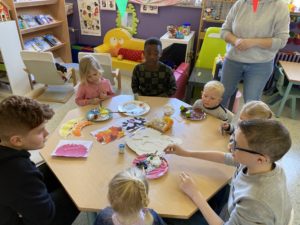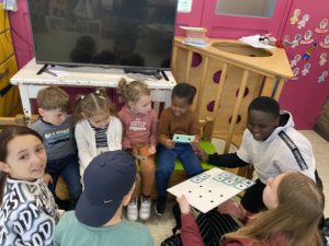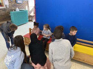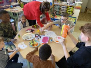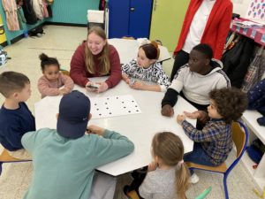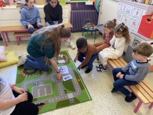 Avec l’aide de Mme Aurélie (stagiaire en P6), de Mme Anne et de Mme Pauline, petits et grands se sont rencontrés afin de vivre différentes activités autour de la lecture d’un album “L’oeuf de Madame Poule”.