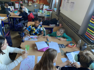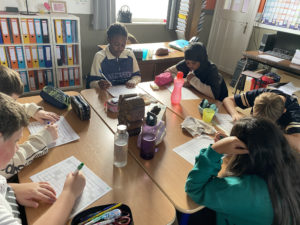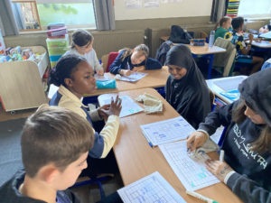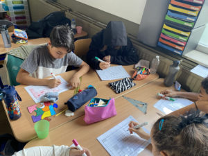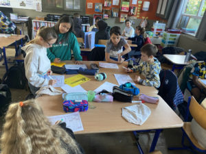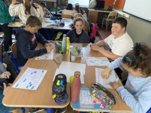 Les élèves travaillent en groupe car ils peuvent se servir des ressemblances et différences entre leurs tableaux pour réussir à les compléter et surtout pour s’entre-aider!