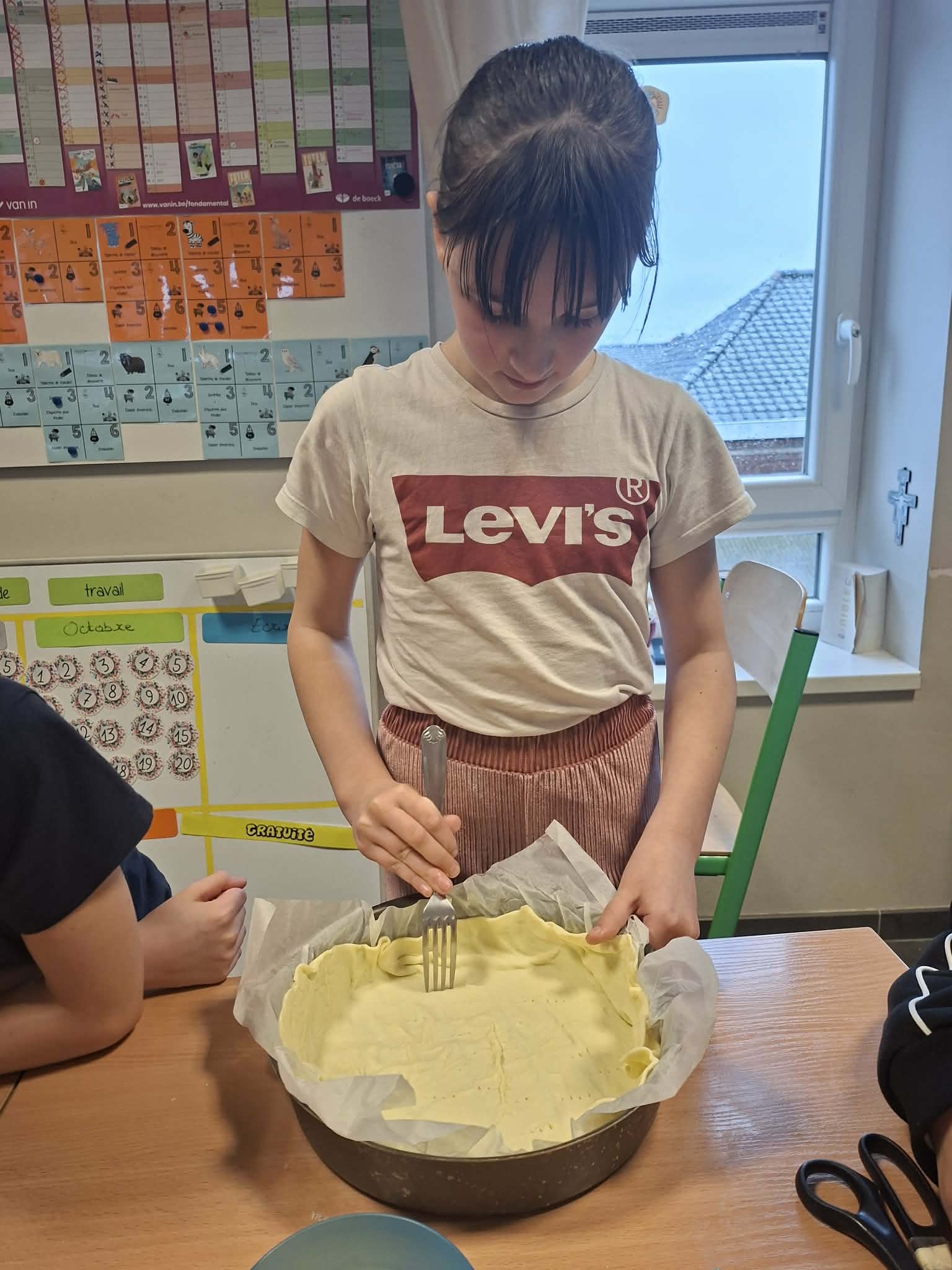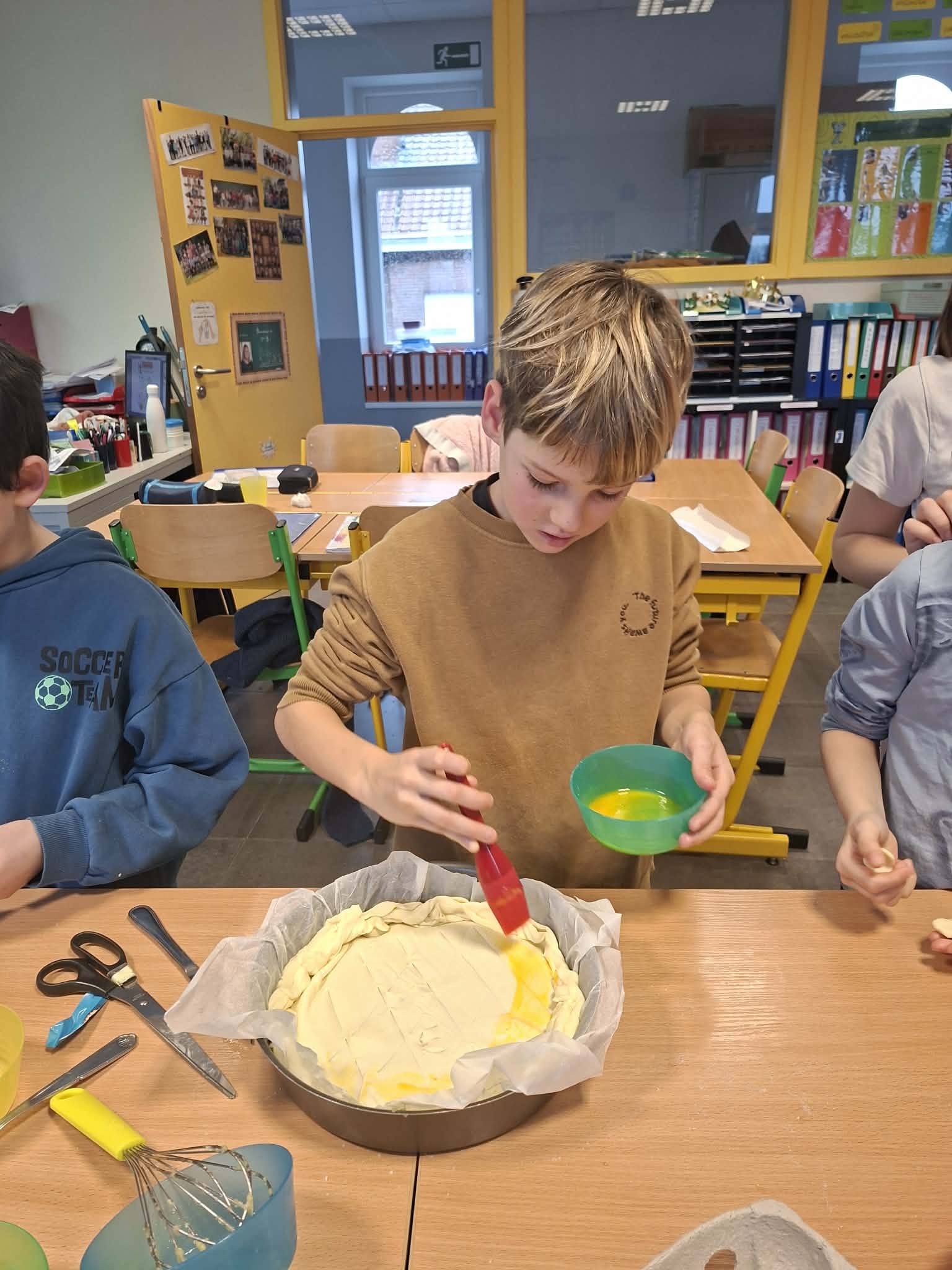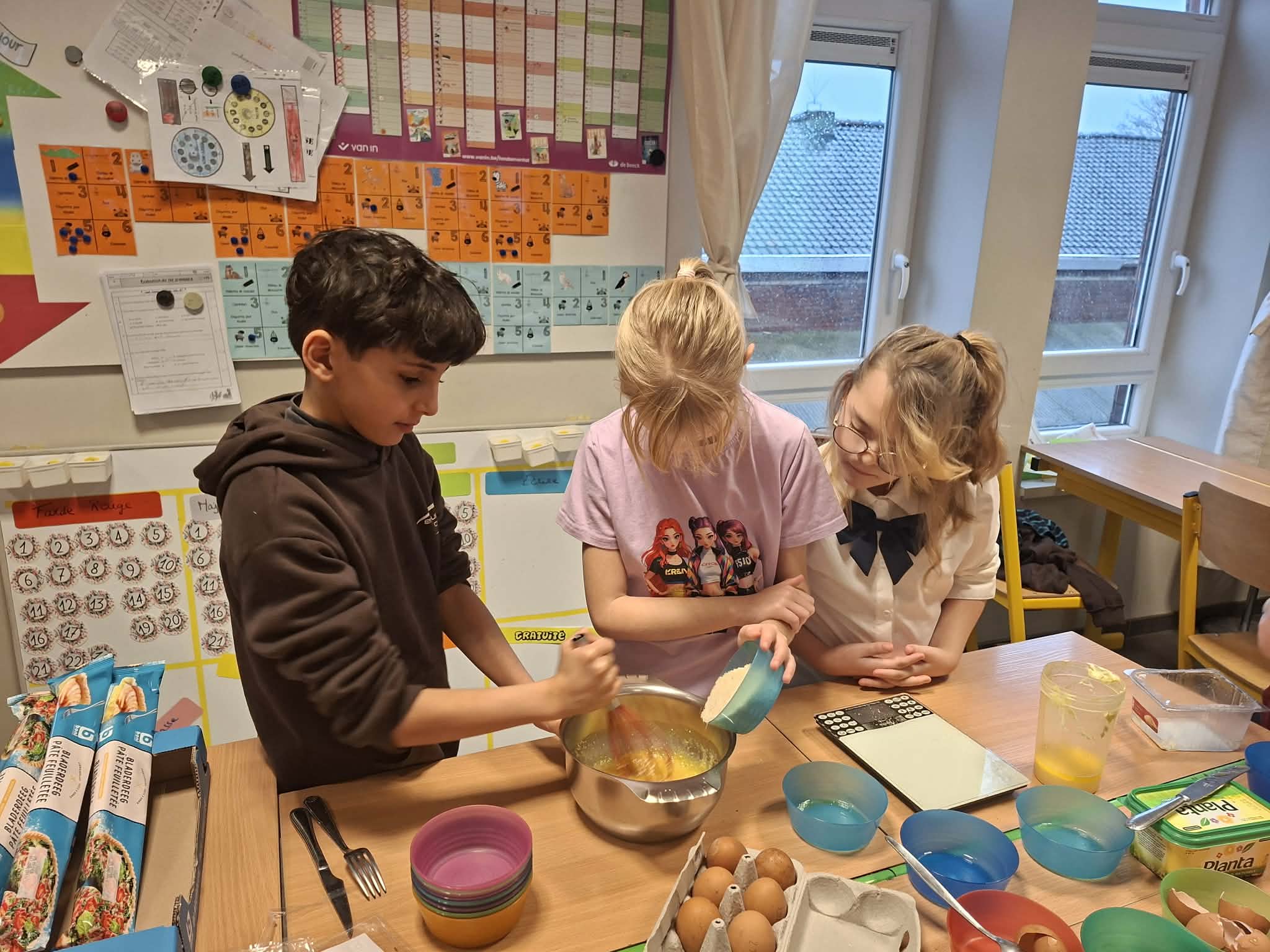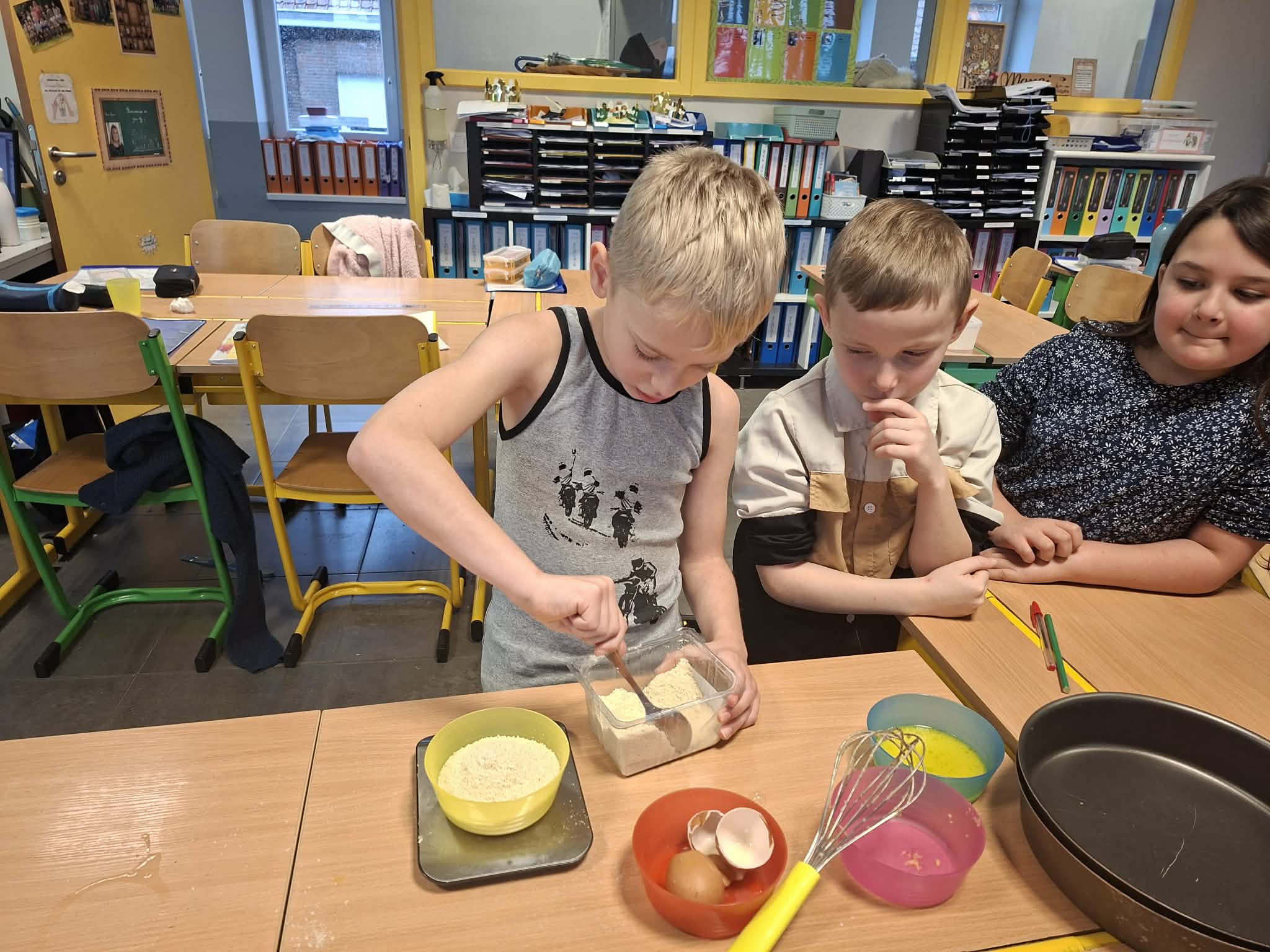 Ce vendredi 09 janvier, les élèves de P3/P4 ont cuisiné leurs galettes des rois. Nous avons découvert la recette ensemble :