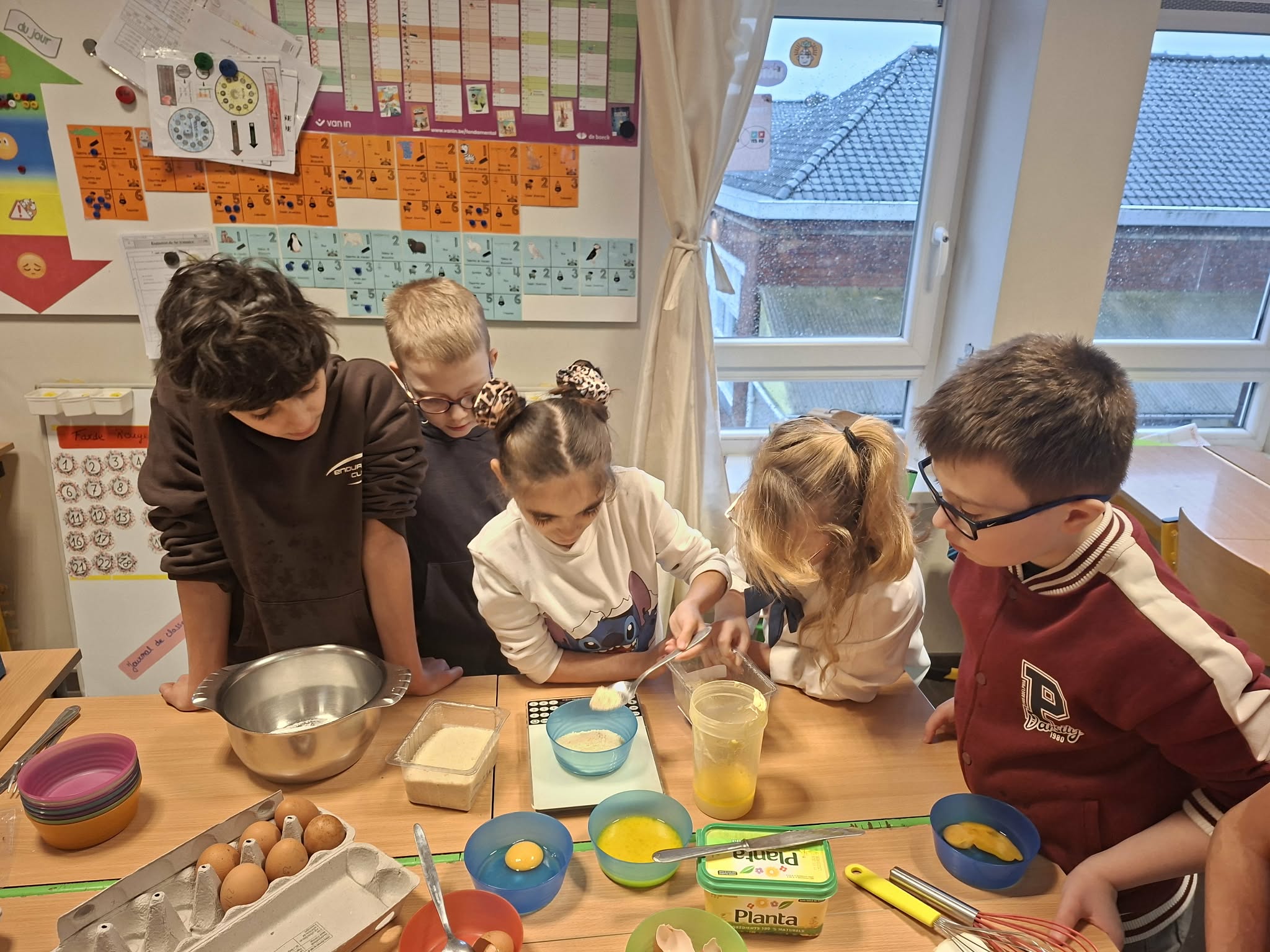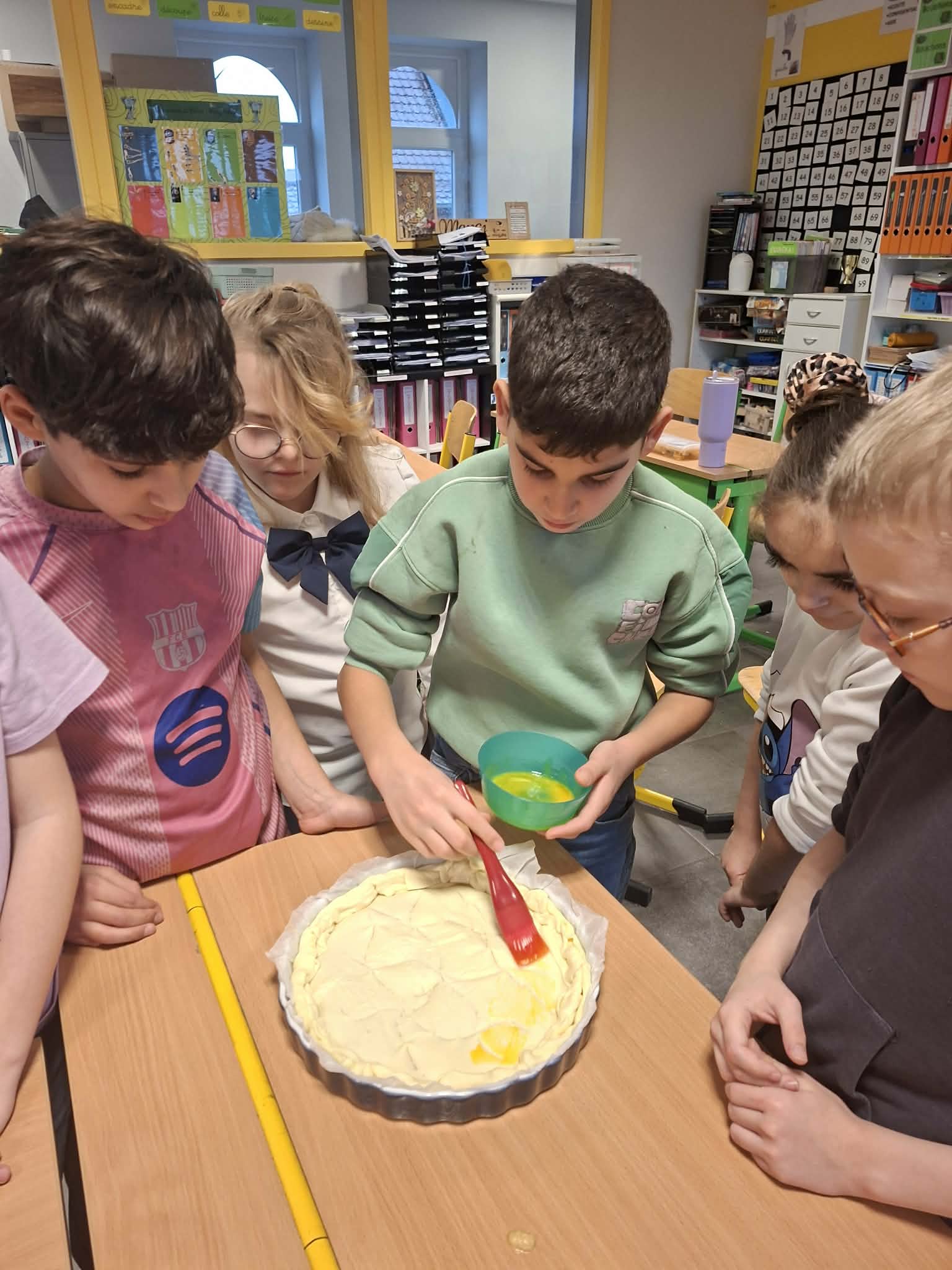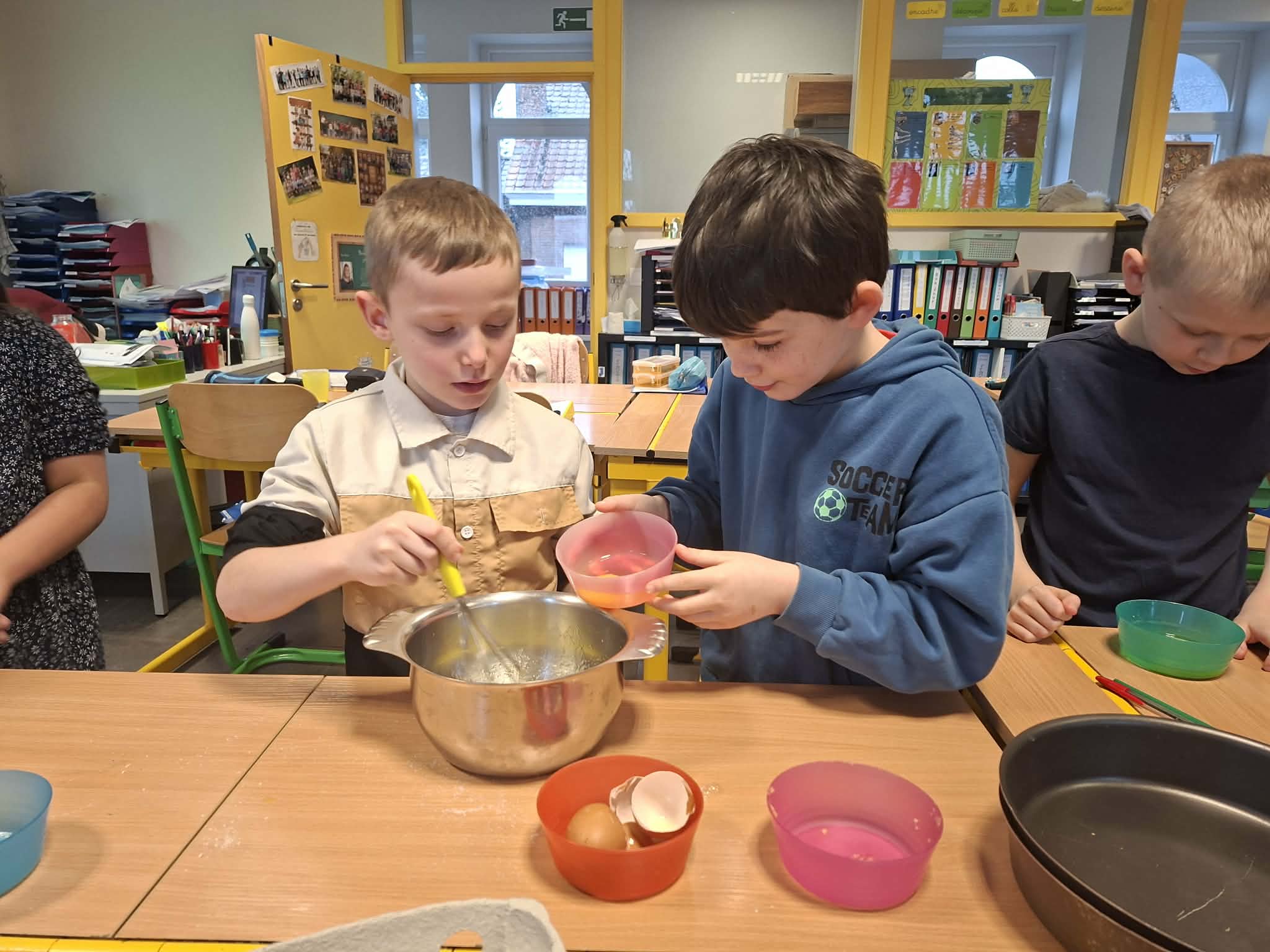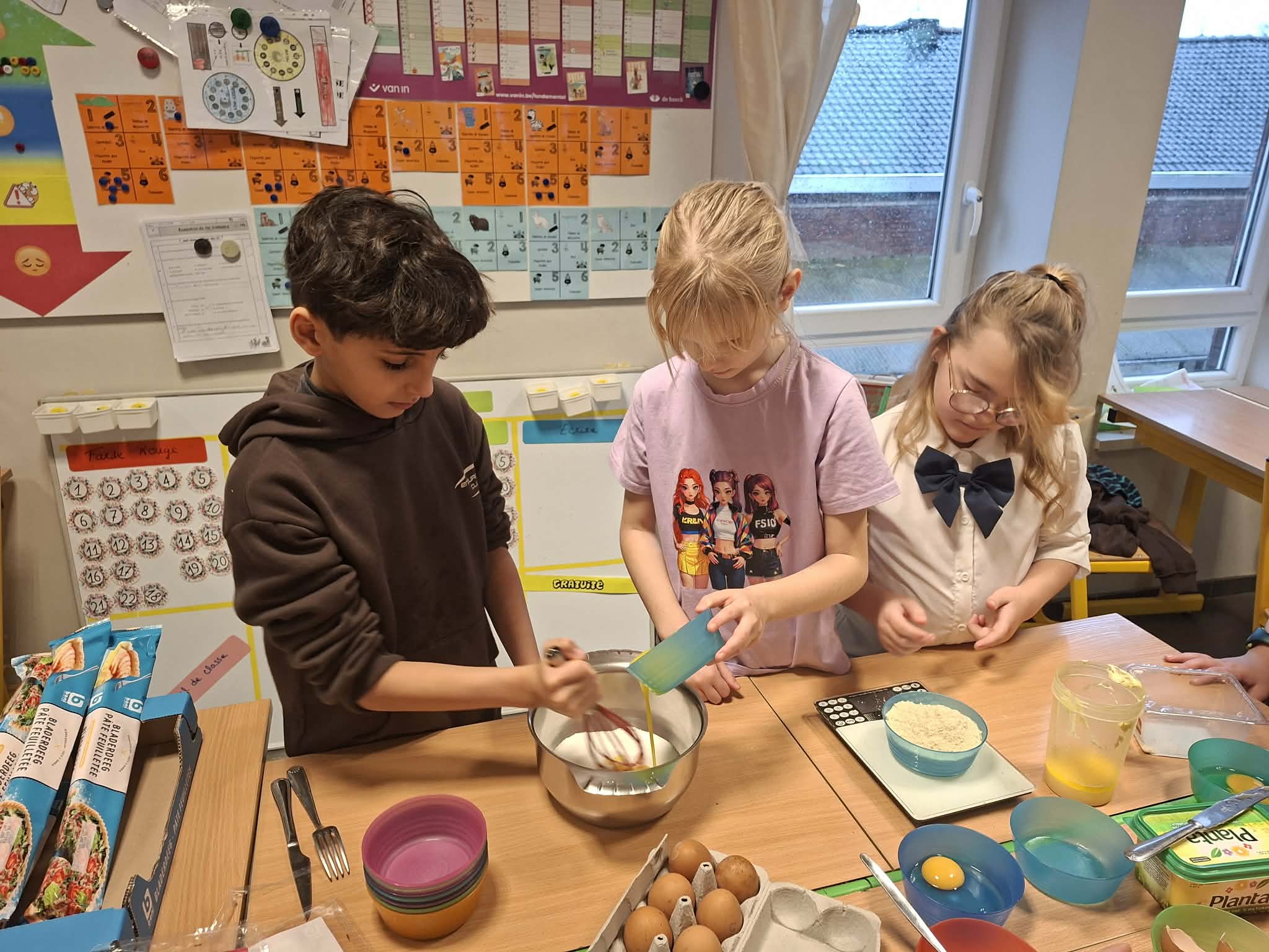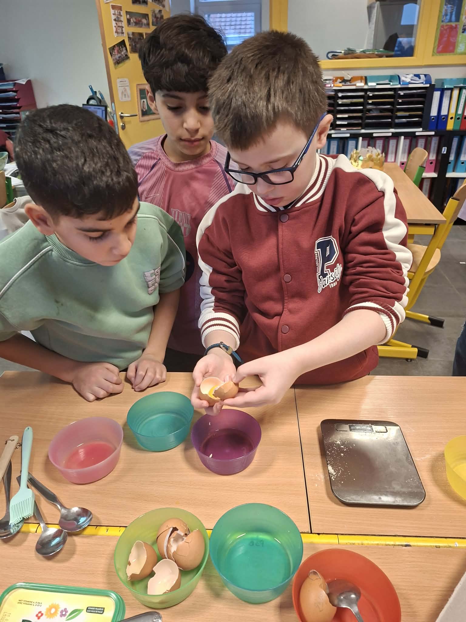 Ce vendredi 09 janvier, les élèves de P3/P4 ont cuisiné leurs galettes des rois. Nous avons découvert la recette ensemble :