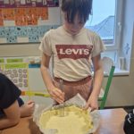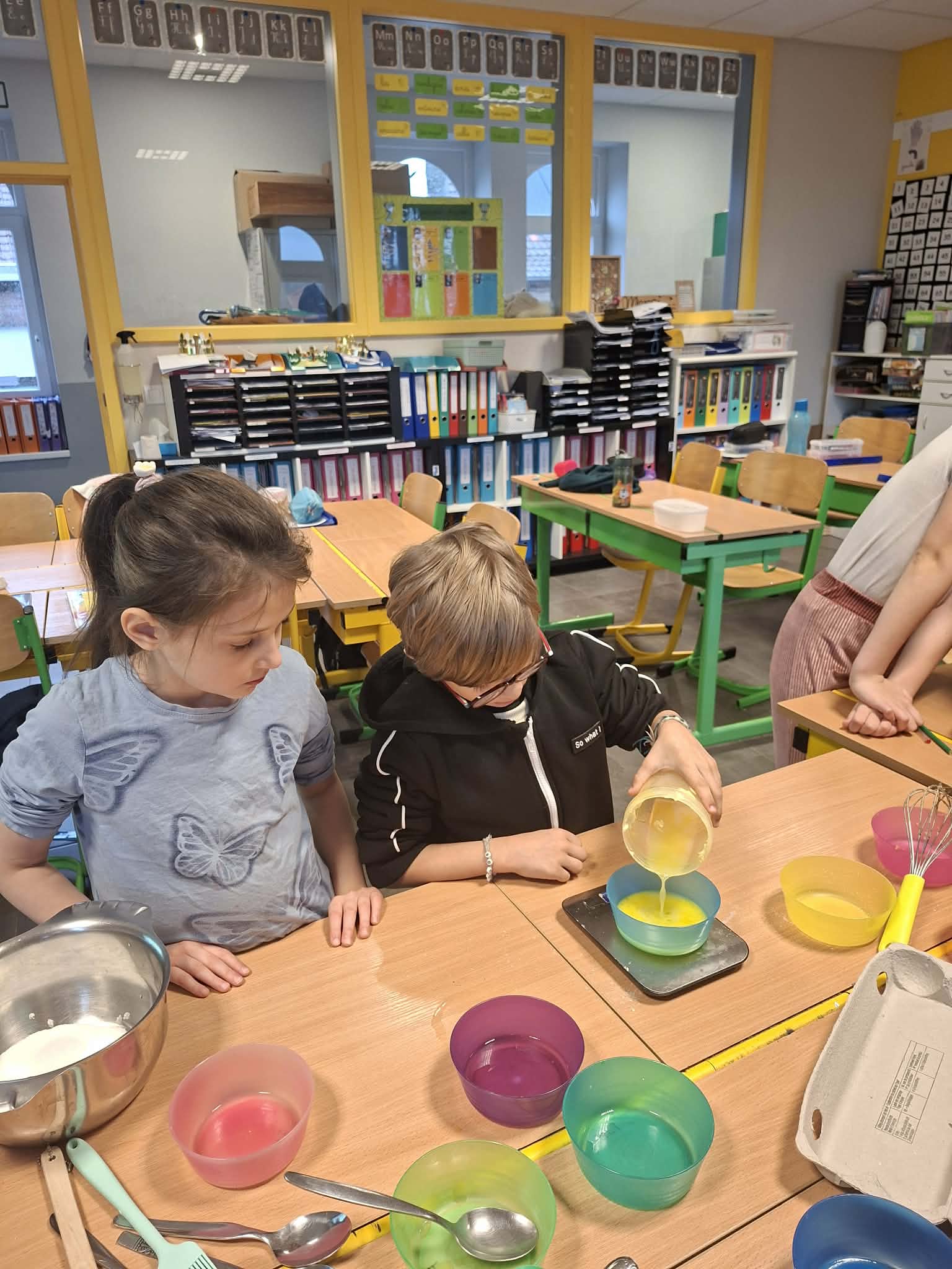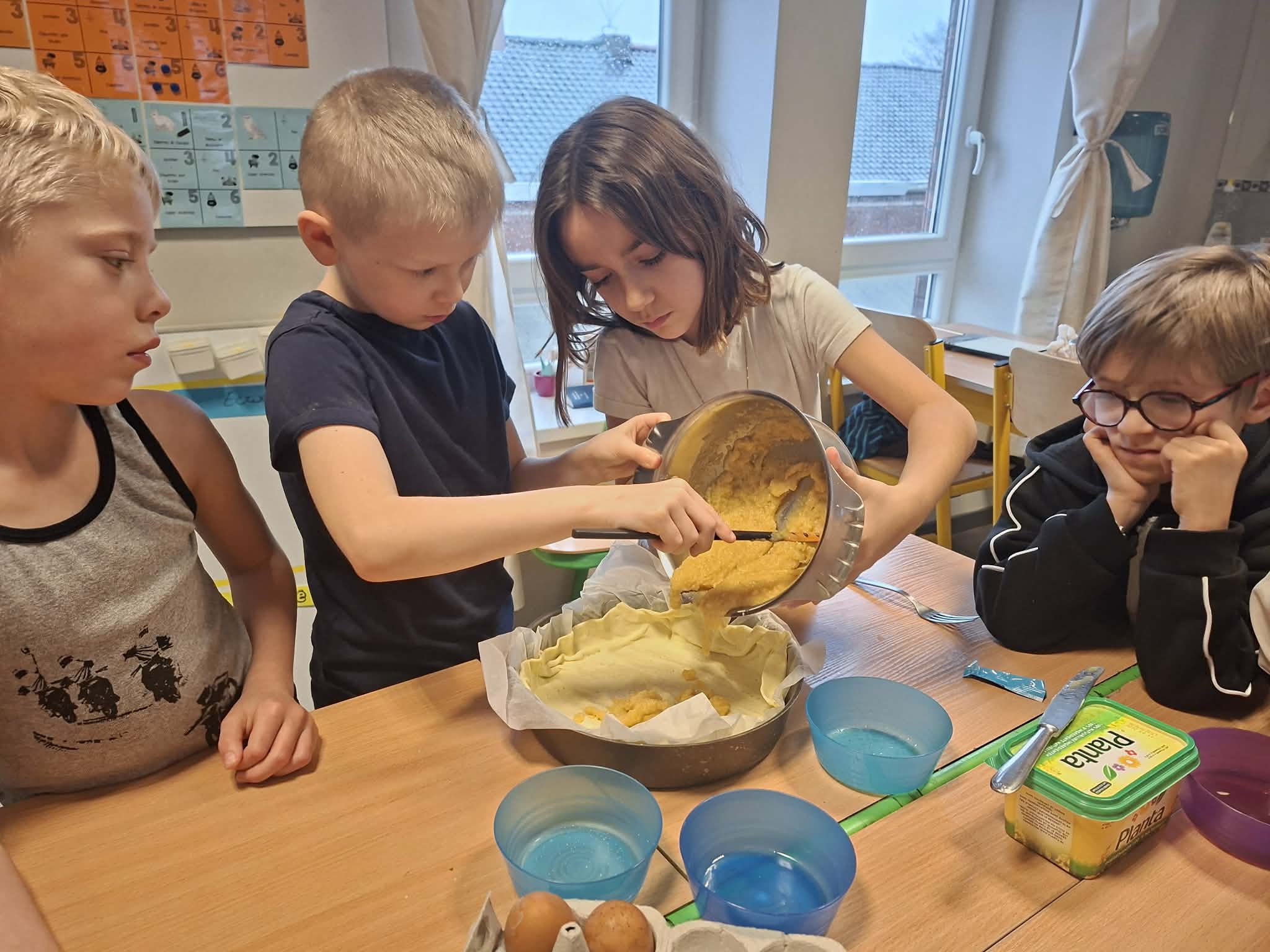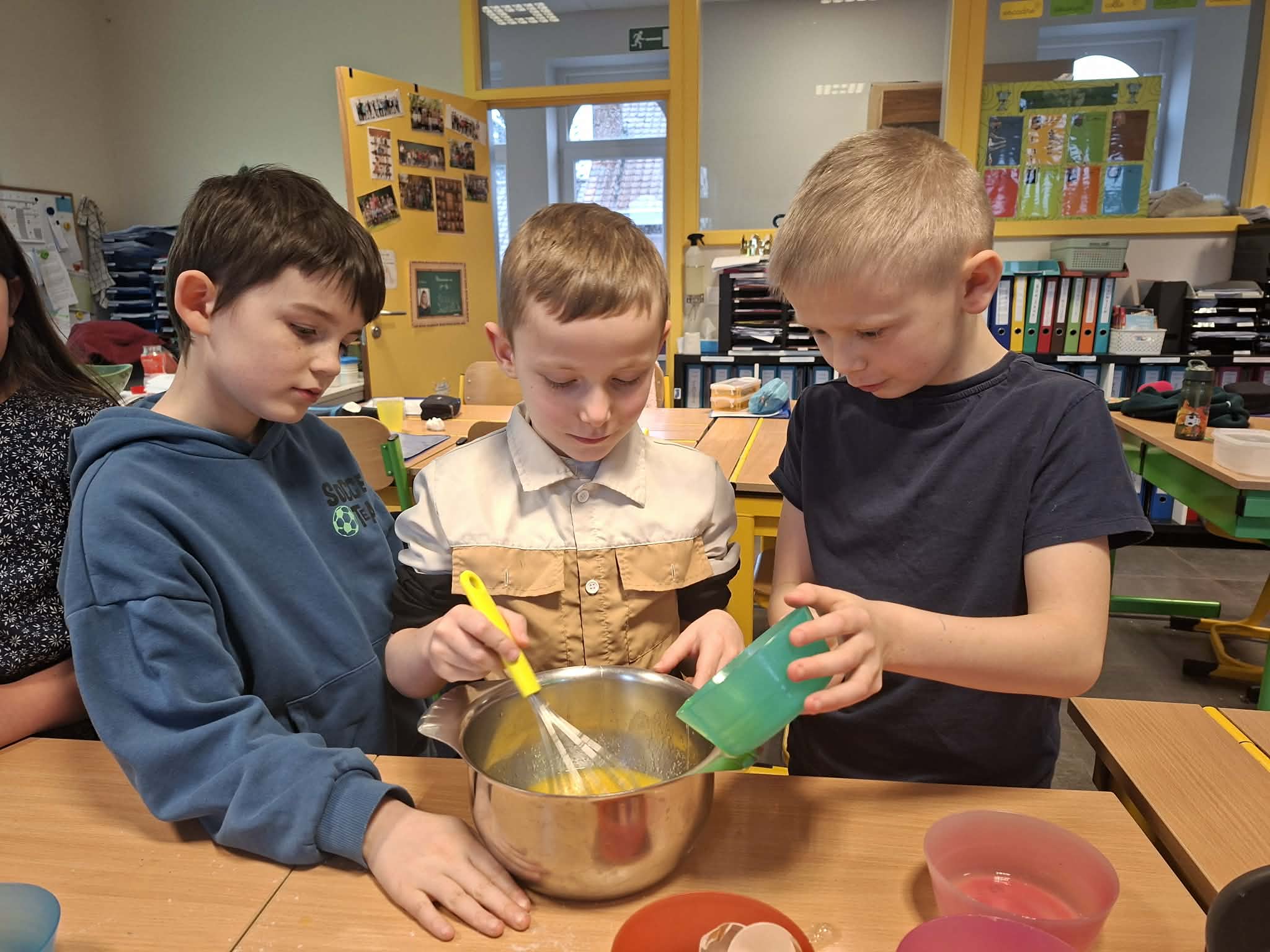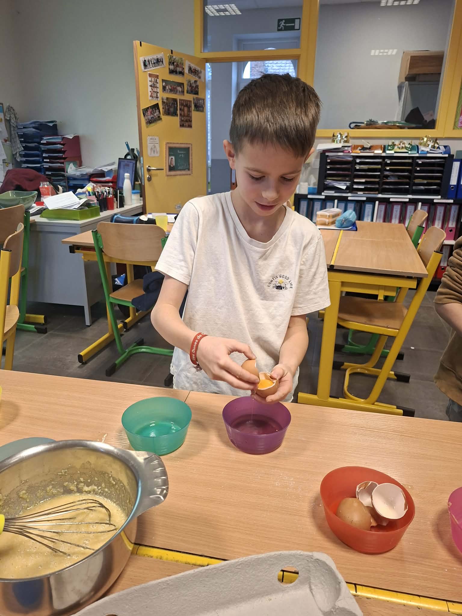 Ce vendredi 09 janvier, les élèves de P3/P4 ont cuisiné leurs galettes des rois. Nous avons découvert la recette ensemble :