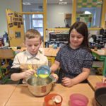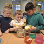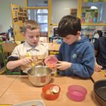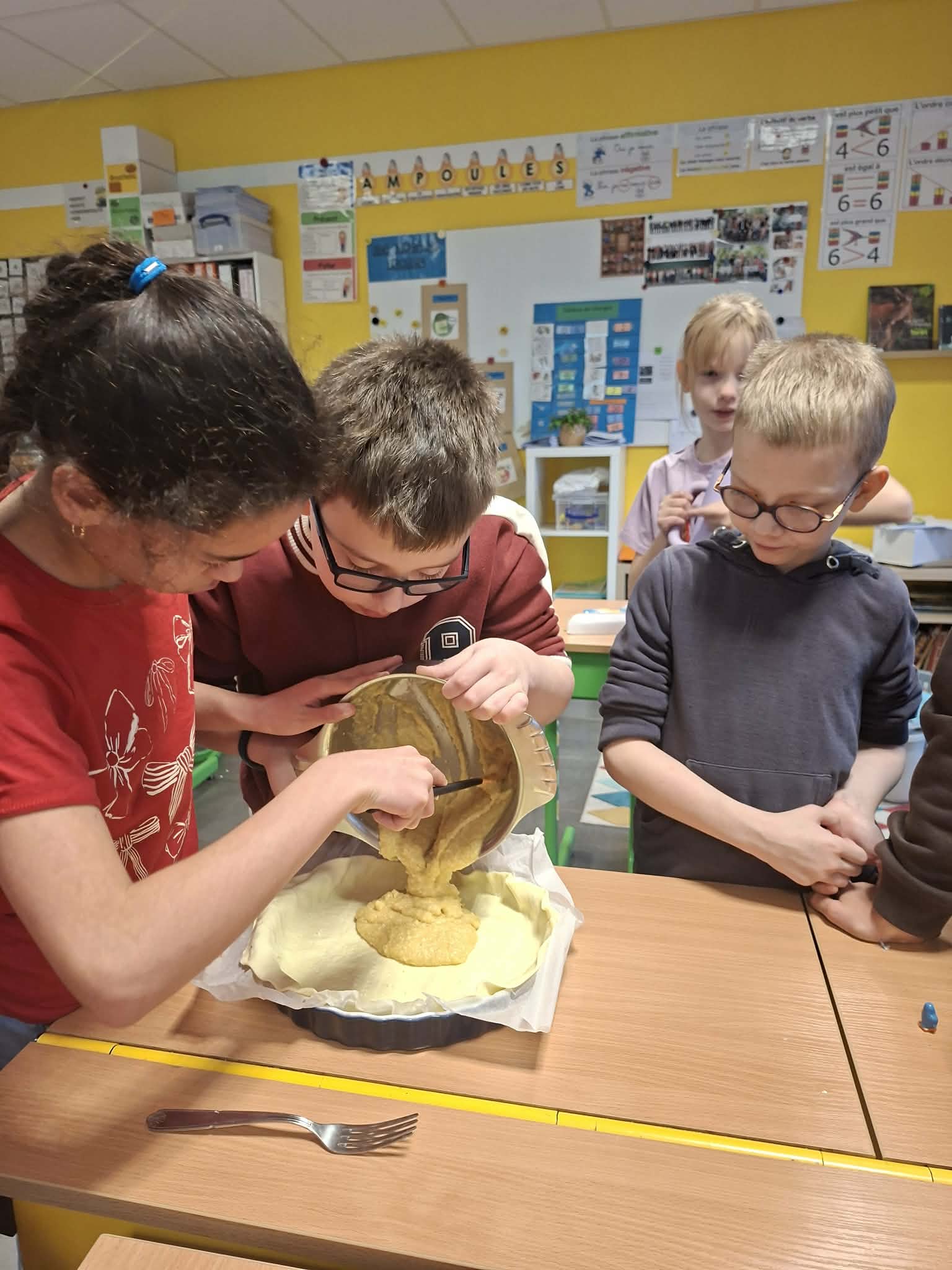 Les grands gagnants de ce jour étaient Emma, Kelyan et…. Mr Jérôme ! Certains étaient déçus de ne pas avoir eu la fève mais tous étaient ravis de ce moment de cuisine et de convivialité tous ensemble. La recette a également fait l’unanimité puisqu’il n’en restait plus une miette !