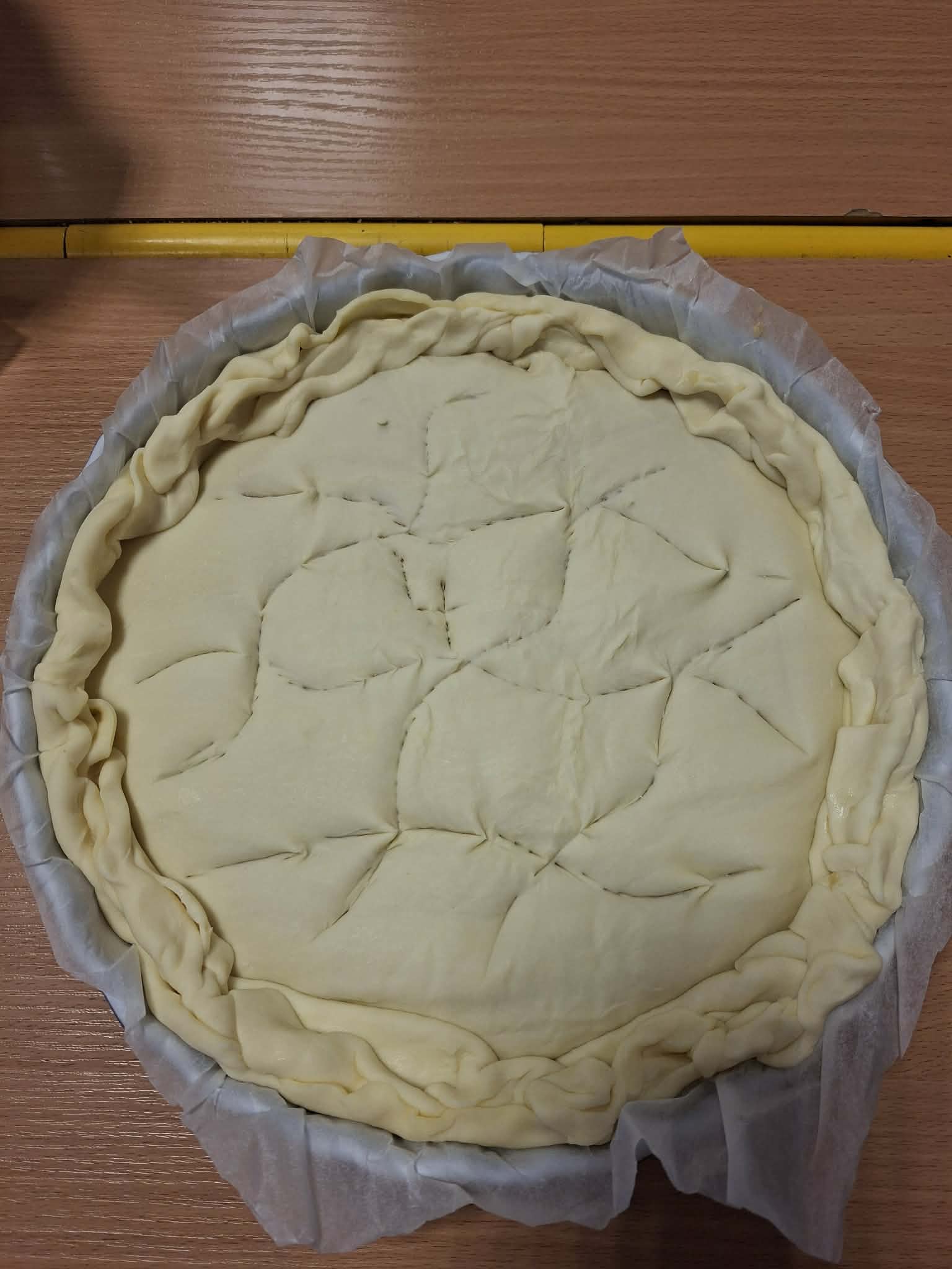 - Recouvrir le tout avec la 2ème pâte feuilletée.