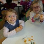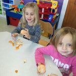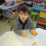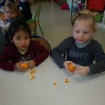 Nous avons également appris à éplucher une mandarine comme des grands !