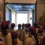 Les enfants, une fois le ventre bien rempli, se sont glissés dans la peau d’employés Delhaize. Ils ont enfilé le t-shirt et la casquette du magasin pour la visite de l’envers du décor ! Les enfants se sont d’abord rendus dans les locaux techniques, puis ils ont pu observer les différentes chambres froides et la salle de tri des consignes.
