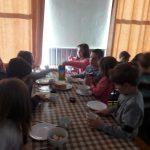 Visite du directeur au chat botté où les enfants ont reçu quelques friandises.