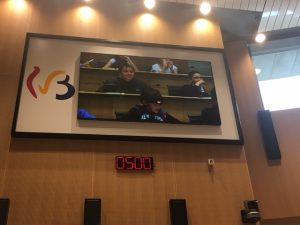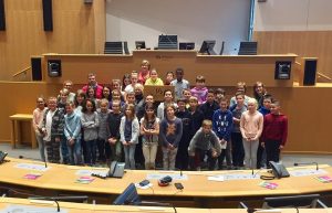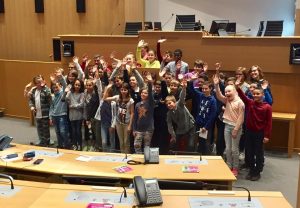 Le guide leur a d’abord expliqué et présenté la salle et le déroulement d’une séance. Puis, les enfants ont pu se mettre dans la peau de vrais parlementaires en votant pour ou contre des vacances d’été plus courtes.