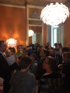 Après une longue route et une petite marche, les enfants ont pu visiter le bâtiment où se rassemblent les députés et où sont votés les décrets et lois qui régissent notre Fédération Wallonie-Bruxelles.