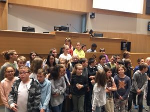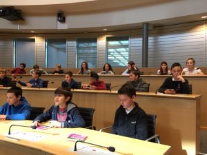 Ensuite, les enfants ont pu se rendre dans l’hémicycle, c’est-à-dire le lieu où les députés se réunissent pour voter les différents décrets en séance plénière.