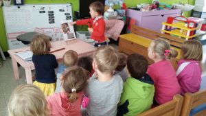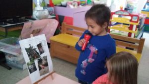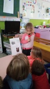 Armés de leurs photos et du micro de madame Valérie, les enfants de deuxième maternelle ont raconté leurs vacances.