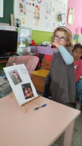 Les enfants de deuxième maternelle ont pu préparer un petit « devoir » à la maison à l’aide de papa et maman. Ils ont dû chercher, dans leur mémoire, et dans les appareils photo des adultes, des moments bien précis de leurs vacances pour les raconter au reste de la classe.
