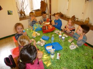 Arrivés dans un pays magique où vivent les lutins gardiens des saisons, nous nous sommes vite transformés pour aider nos amis à chercher de la nourriture avant que l’hiver n’arrive.