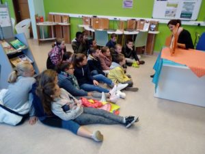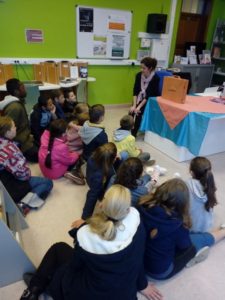 Ils ont ainsi été très bien accueillis par Mme Mélanie Detournay qui est la bibliothécaire de ce lieu. Elle leur a d’abord expliqué le fonctionnement de la bibliothèque, son rangement et la quantité de livres qui s’y trouve ! Ensuite, une fois tout le monde installé, elle leur a fait découvrir les astuces pour capter l’attention des plus petits. De plus, à l’aide de deux contes narrés à la manière Kamishibai*, elle leur a appris à lire un récit à des enfants de 3 et 5 ans. Et pour finir, les élèves ont pu lui poser toutes les questions qu’ils désiraient.