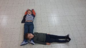Pour clôturer tout le travail des lettres droites de l’alphabet, les enfants de deuxième maternelle du Clos de la Quièvre se sont amusés à reformer les lettres T, H, L, I, E et F avec leur corps. Comme vous pouvez le constater, les 6 lettres s’écrivent avec des lignes horizontales et verticales. Encore un moyen pour mettre en pratique les connaissances des semaines précédentes.