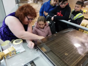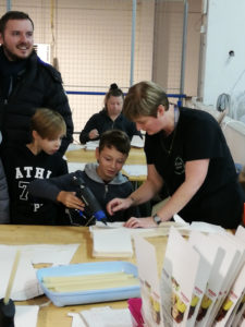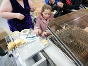 A notre arrivée, nous avons été accueillis par Mr Samuel qui nous a fait une visite complète et active de toute l’entreprise. Oui, oui, vous avez bien lu « active », car nous avons pu essayer certains postes ! Et avons ainsi découvert comment faire des transferts sur vêtements, comment souder ou comment emballer des marchandises comme des savons, des verres, des tapis…