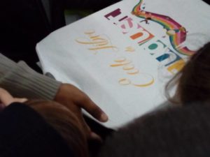 « J’ai aimé coller l’étiquette sur le t-shirt et j’ai appris à dire « bonjour » en langue des signes ! » Arthur