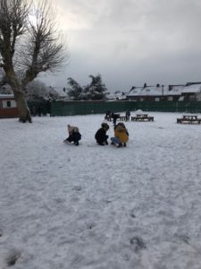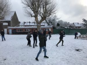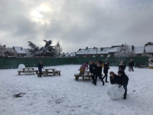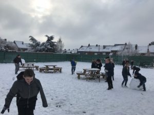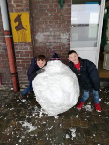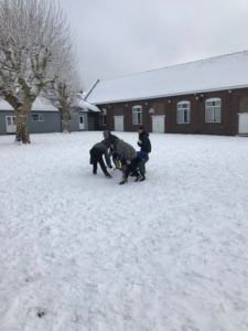 Joie de la neige Ce mercredi, un petit quart d’heure avant la fin des cours, les élèves de 6e année ont eu le plaisir de faire une bataille de boules de neige dans leur cour de récréation!