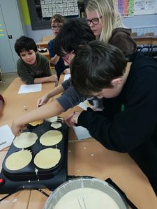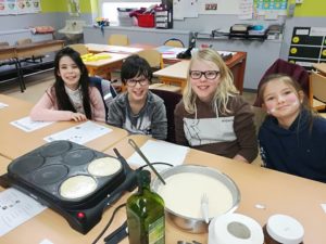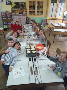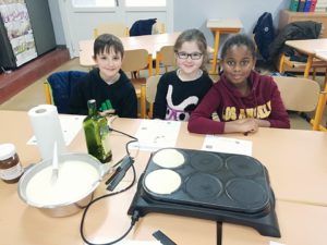“Après-midi crêpes” en P4 “Après-midi crêpes” pour les 4e années, ce vendredi 8 février, avec Mme Orlane et Mme Marie-Elise.