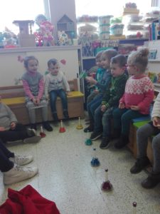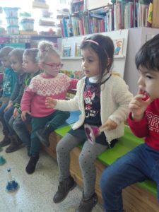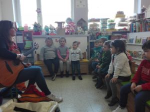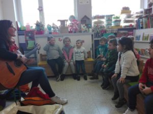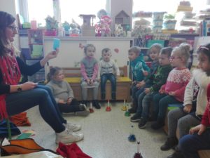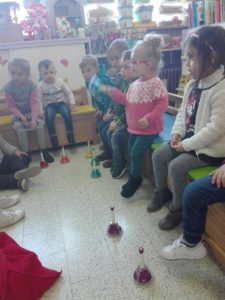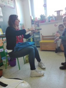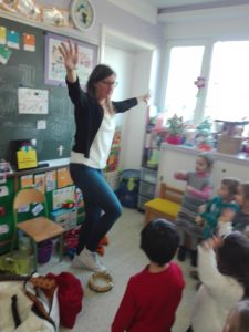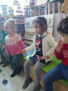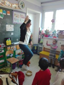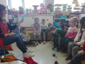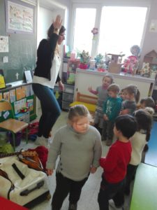 Ce mardi 19 février, Aurélie une animatrice des jeunesses musicales est venue dans la classe des premières maternelle pour chanter, danser, s’amuser au rythme de la musique!