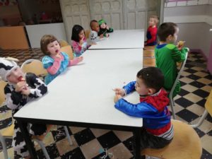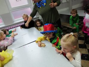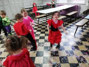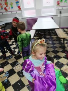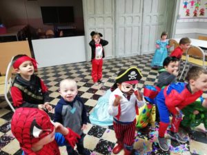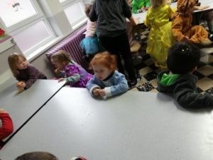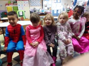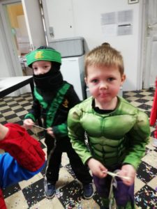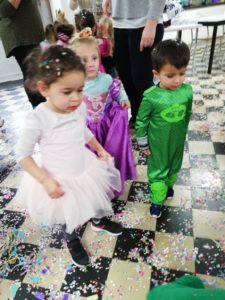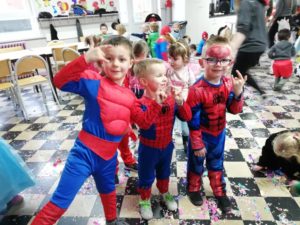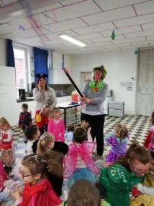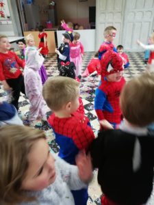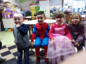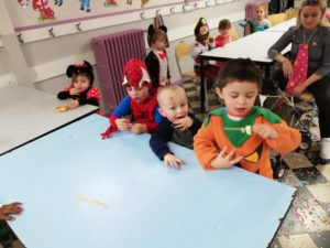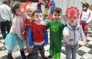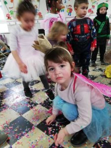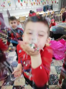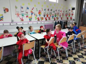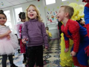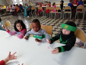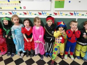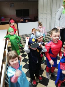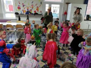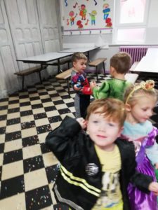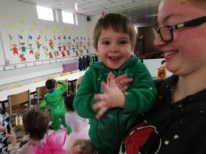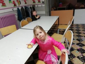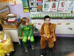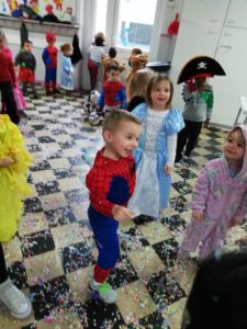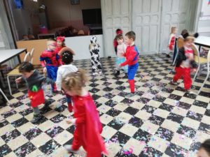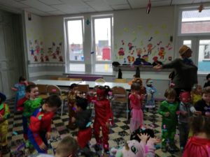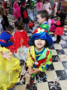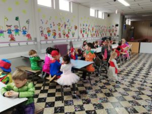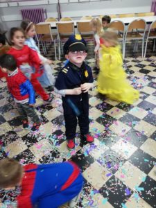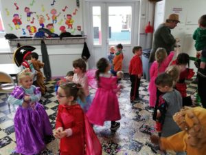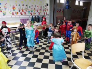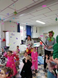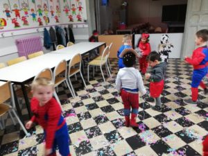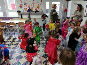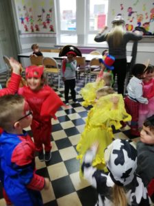 Carnaval en maternelles Ce jeudi, les élèves de 1ère et 2ème maternelle ont fêté l’approche du carnaval. Déguisements, danses, confettis, buffet de gourmandises,… Tout était réuni pour passer une belle matinée.