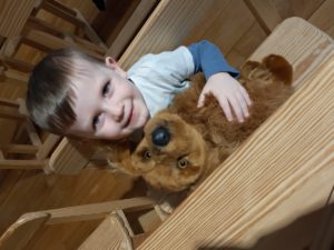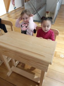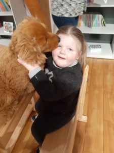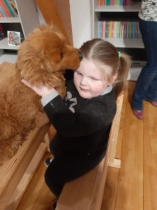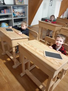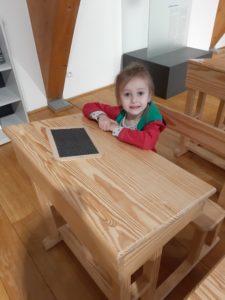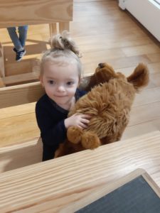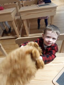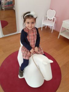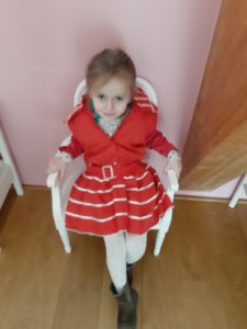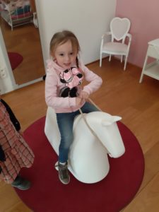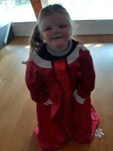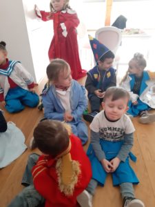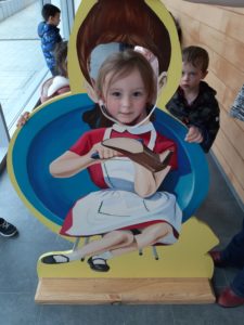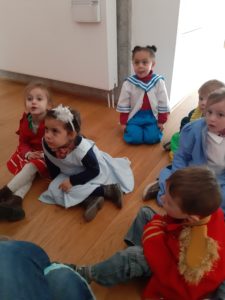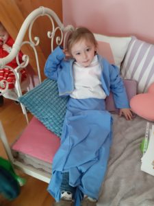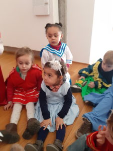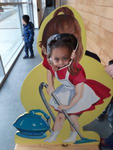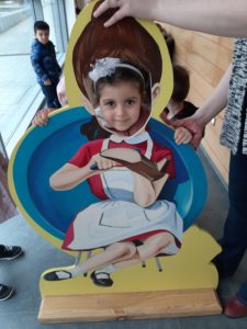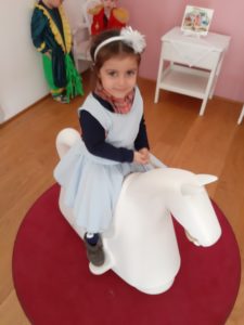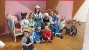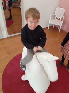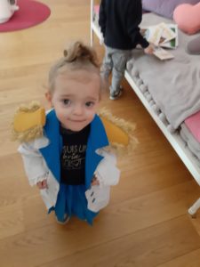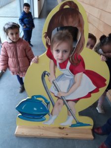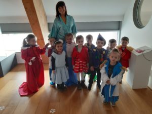 La visite a continué dans la magnifique chambre de la petite fille où les élèves de madame Anne et madame Valérie ont pu se déguiser en princesses, chevaliers, clown…et même enfiler les vêtements de Martine.