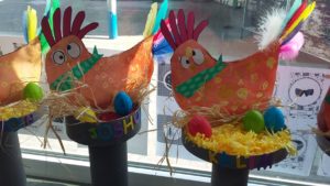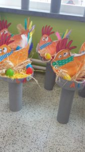 En attendant madame la poule… (M2 – Clos) En attendant madame la poule, les enfants de madame Valérie de deuxième maternelle du clos de la Quièvre ont réalisé un bricolage de Pâques. Nous avons hâte qu elle arrive. En voici le résultat. Joyeuses fêtes de Pâques.