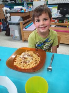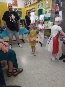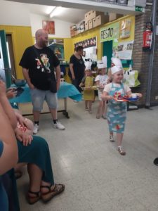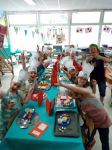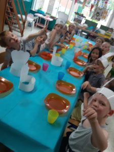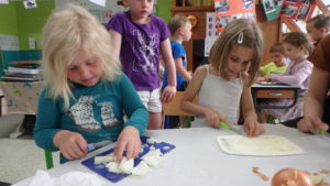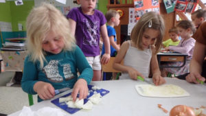 Toute la journée les enfants ont épluché, coupé, écrasé, cuit, rangé, fait la vaisselle,…. une vraie fourmilière organisée où chacun avait sa tâche ! Et félicitations aux courageux qui ont affronté les oignons !