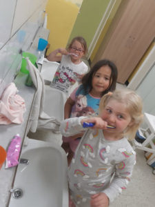 Après la vaisselle pour certains et jeux et histoires avec Jules pour les autres, les filles se sont préparées pour la nuit puis c’était le tour des garçons.