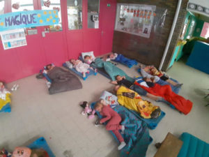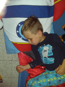 Il est l’heure d’aller se coucher ! Ils n’attendaient que ça ! Après quelques photos et chahut, on se couche, on se calme, on écoute des histoires et on s’endort… chacun à son tour, les enfants tombent comme des mouches !