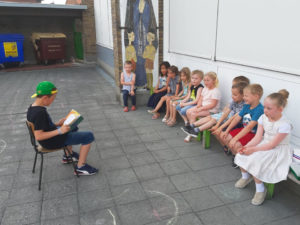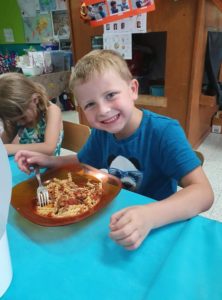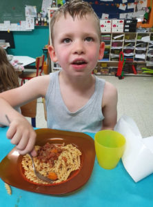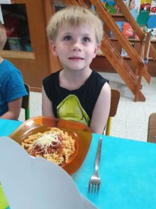 Avant de passer à table pour le souper, les enfants ont pris l’air dans la cour et se sont amusés avec le super animateur Jules !