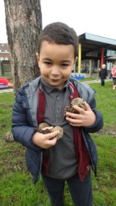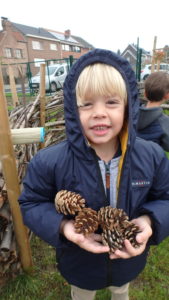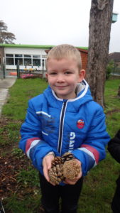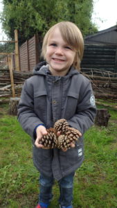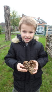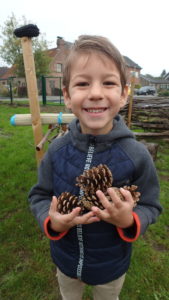 Les enfants ont fait une chasse aux pommes de pin. ” Chacun en ramène 5 !”