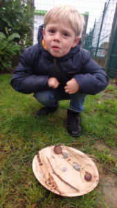 Cette fois-ci, avec tous les trésors d’automne ramenés par les enfants, et après avoir vérifié le vocabulaire, les enfants ont réalisé un visage.