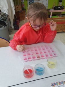 Les couleurs de l’automne Après avoir découvert les couleurs de l’automne lors d’une séance dans le jardin du clos, les enfants de deuxième maternelle ont expérimenté des expériences sur les mélanges de couleurs.En voici quelques bons moments !